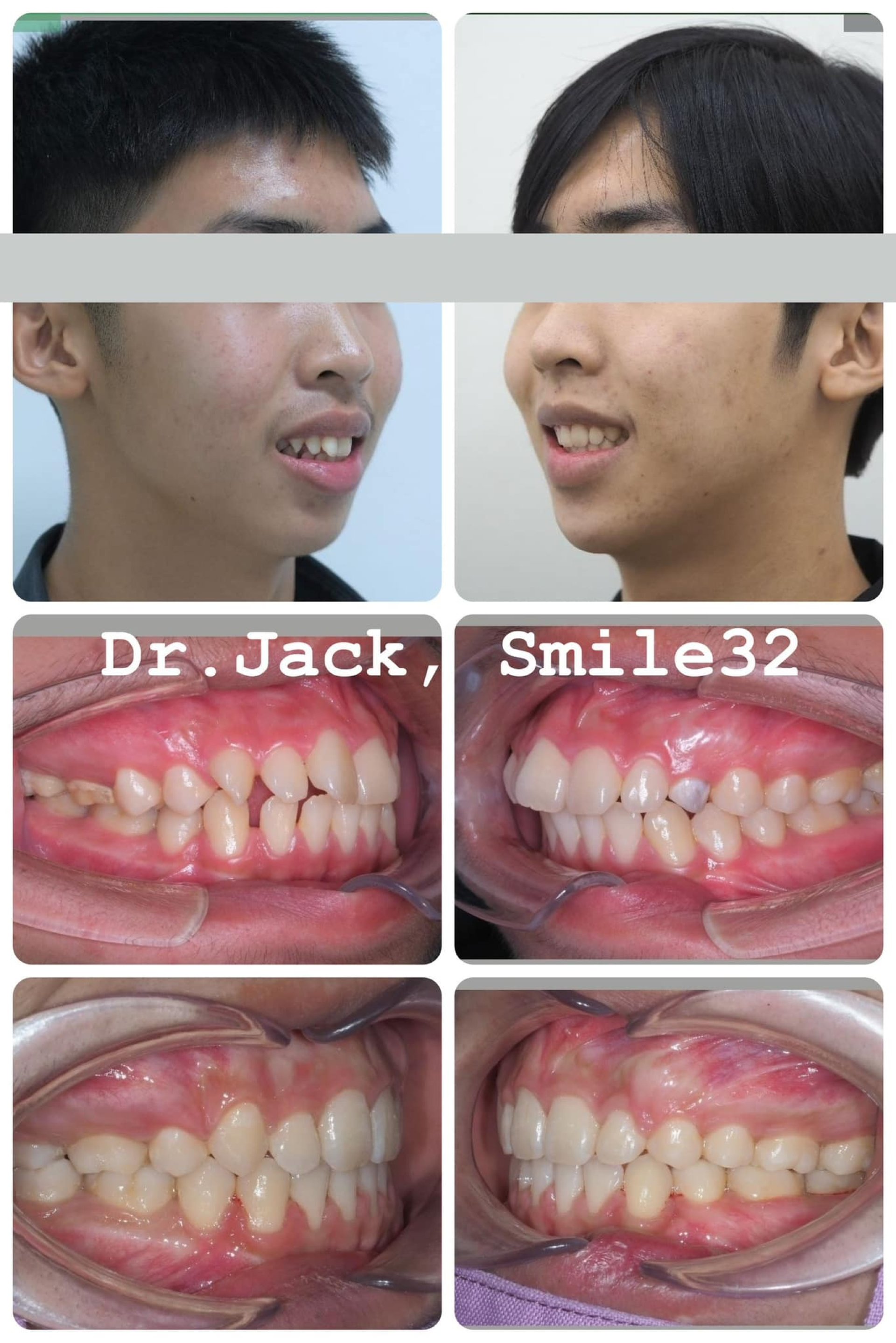 น่าสนใจตรงที่คนไข้ยังมีฟันน้ำนมค้างอยู่ในปาก (ซ้ายบน)